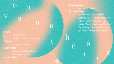 Après avoir rassemblé plus de 200 spectateurs en janvier dernier, Les Fous to Arts reviennent sur scène avec un nouveau projet: "ON VA AU THÉÂTRE". L'événement aura lieu à l'Espace Le 23, à Strasbourg, les 30 avril et 1er mai 2022. Deux pièces seront représentées chaque jour: "Cuisine et dépendances" d'Agnès Jaoui et Jean-Pierre Bacri, et "Il était une famille..." de Lysiane Blériot. L'achat d'un billet pour l'un des spectacles vous permet d'assister au second pour seulement 2€ de plus.