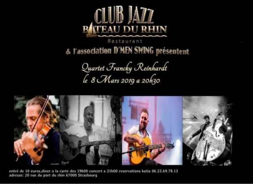 bonjours concert de la formation , francky reinhardt au club jazz bateau du Rhin a 20h30 soirée a ne pas manqué