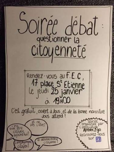 Pour ce 1er événement de l’année Altern’& Go vous invite à une soirée d’échanges et de débat autour du thème de la citoyenneté.