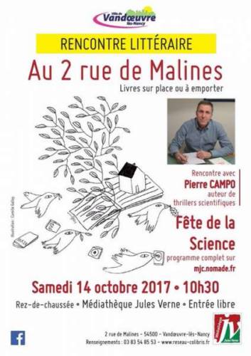 Dans le cadre de la fête de la science, nous vous proposons, lors de notre rendez-vous mensuel Au 2, rue de malines, de venir rencontrer l’auteur Pierre Campo, ce samedi 14 octobre à 10h30