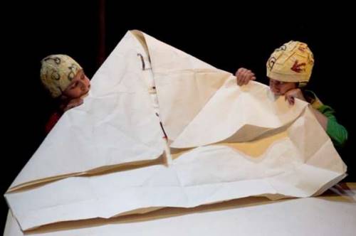 Deux femmes sont en voyage. Le public est embarqué à bord d’une grande feuille blanche où tous les possibles jaillissent dans une belle proximité.