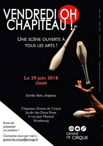 Venez nous rejoindre le 29 juin 2018 à 20h sous le chapiteau-spectacle de Graine de Cirque pour le prochain "Vendredi Oh Chapiteau", dernier de la saison !