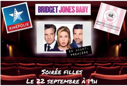 Les places sont limitées ! Réservez dés maintenant votre soirée entre filles (familles, amies, collègues...) sur le site du cinéma KINEPOLIS pour découvrir le prochain BRIDGET JONES en avant-première, cocktail de bienvenue, animations et soins d’exception proposés par BEAUTÉ GOURMANDE et de belles surprises à gagner !