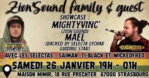 Retrouvez le Zion’Sound le 26 janvier a la Maison Mimir pour une soirée SOUND SYSTEME REGGAE avec les Selektas SAIMAN TI-BLACK et WICKEDFRED qui vont vous mettre le Fyaah a coup de reggae dancehall ! La soirée sera accompagnée d’un show case de MightyVinc’ et Mael deux jeunes artistes reggae originaires de Strasbourg qui vont vous faire découvrir leur talents a travers des rythmes reggae, ragga, dance hall et hip hop .