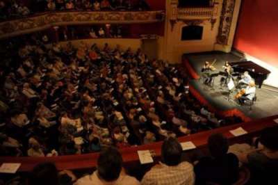 Salle de 1014 places aux tons rouges/or/blancs avec stucs, balcon et galeries pour des opéras classiques.